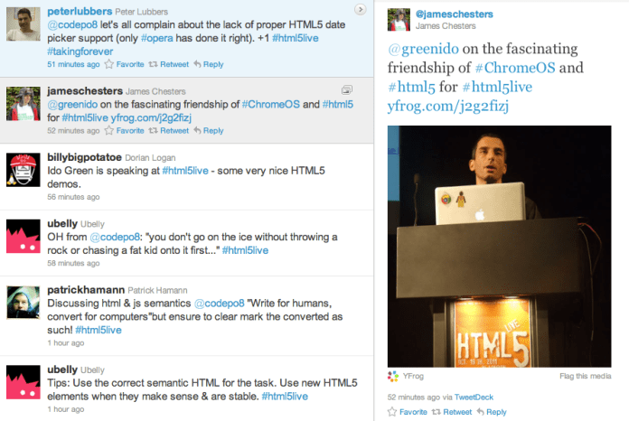 The conference took place on Oct, 19 2011 in the Barbican Conference Centre London. My two goals where to expose enterprise web developer to the new features that HTML5 provide today and to show them how they can leverage these features when they are building enterprises web apps. The other part was to talk with CIO/CTOs about Chrome OS and to ‘bind the dots’ on: how chrome OS harnessing business and developers with more power. Overall, it was a great event in terms of the quality of the audience. Lots of enterprise web developers from financial institution, health care and other big organizations. Some of them are still struggling with IE and the Chrome Frame was a big exciting news for them. Other points I’ve took with me: