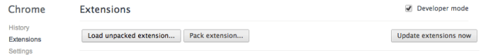 Once you click on the button you need to navigate to the directory that contain the manifest file and your html/js/css files. Once you click on ‘select’ the new extension will be added to the list of extensions and you should see its button on the toolbar (right side of it). You will continue to work and improve your functionality… and once you are happy with the results it’s time to publish your work to the Chrome Web Store. I’ve wrote about this process in the past here: How to get your web app and/or extension into the Chrome Web Store.