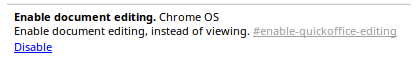 - Click “Enable” next to “Enable document editing”. This is what it should look like under the Flags page: