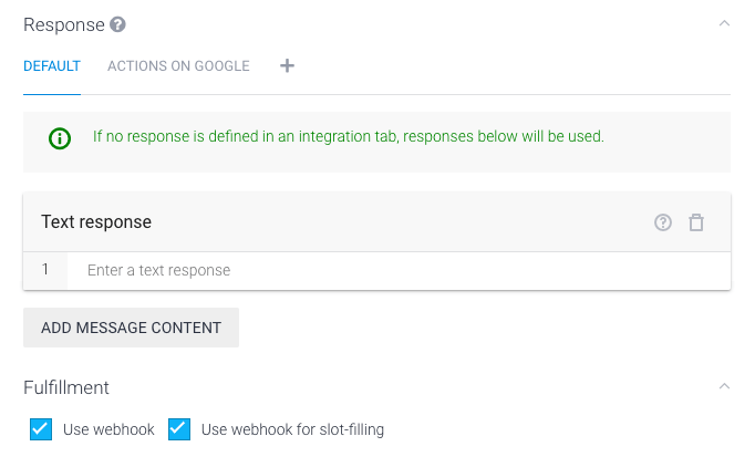 Finally, in the ‘Fulfillment’ section you need to check the ‘webhook’ checkbox.