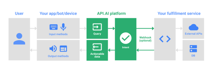 From this point onwards, the user is now talking to your app.conversation action. Your app generates dialog output, which is then spoken to the user. The user then makes requests, your app processes it, and replies back again. The user has a two way dialog until the conversation is finished.