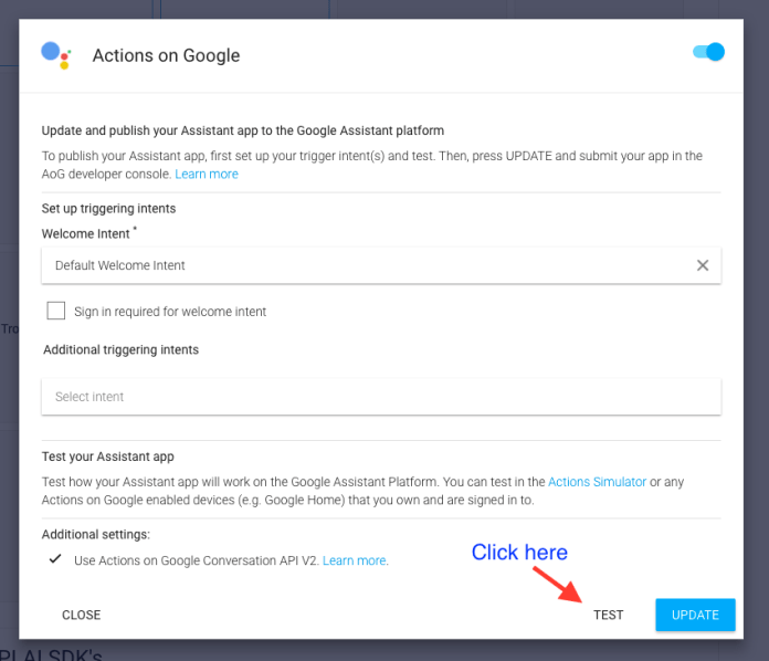 - On “Actions on Google” as this will be our integration.