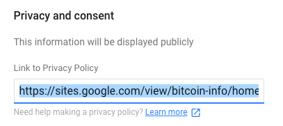 It must be public on the web and related to your app. If you don’t have a web site, you can create one for free with google sites or other services.