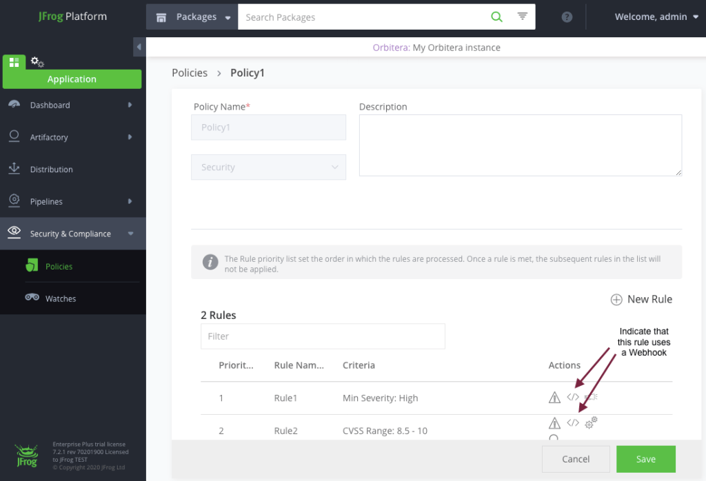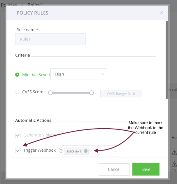 We will use Xray’s Webhooks to define our server’s and base on the policies/rules our Webhook will be notified with the alerts about violations (security or licenses).