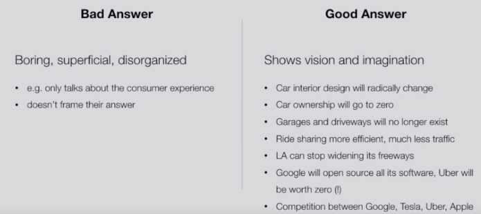 The first question is about describing an app or service can lead to interesting places. It will revel to you how to person communicate, what they capacity to explain complex thing and how they think on optimization. It’s one of these open-ended question that can lead to a 30 minutes discussion on the topic.