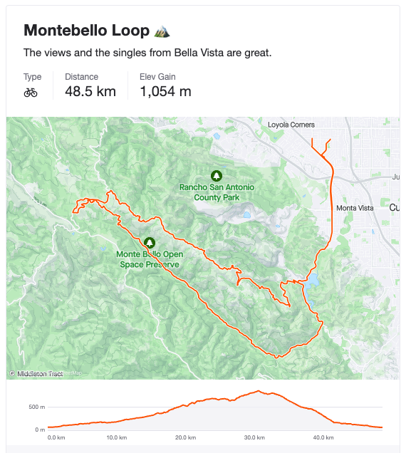 Montebello Loop: This scenic ride offers stunning views of the Santa Cruz Mountains and the Silicon Valley.