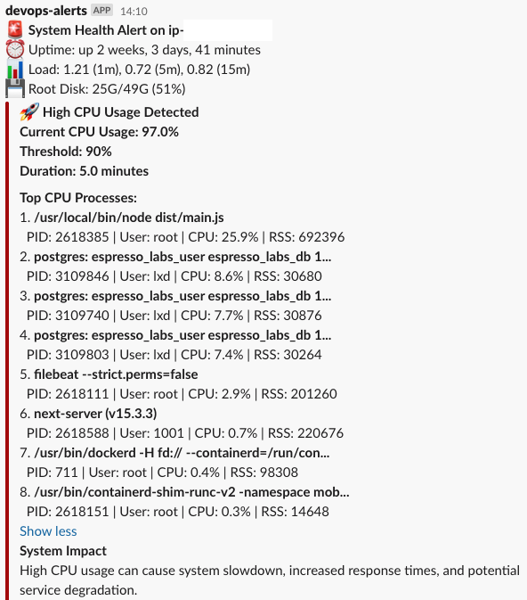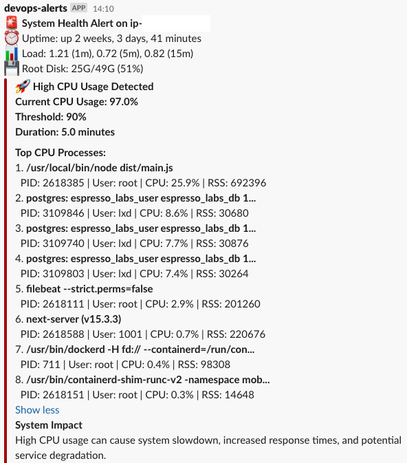 - π₯ Receive rich Slack alerts with system context and top processes