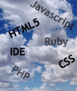 • Cloud9, an IDE for JavaScript, Python, PHP, and Ruby. Cloud9 uses the HTML5 FileSystem capability and AppCache to sync files, so you can even code offline. It got some really nice features that I find myself using a lot: github integration, chat, the ability to work and do reviews on your code without any pain of ‘new/other’ tools.