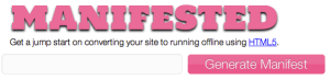 http://westciv.com/tools/manifestR/ – It is a bookmarklet, which you drag to your bookmarks bar. Then, when you visit any page, you can click the manifestR button, and it will create an HTML5 appcache manifest file for that page.