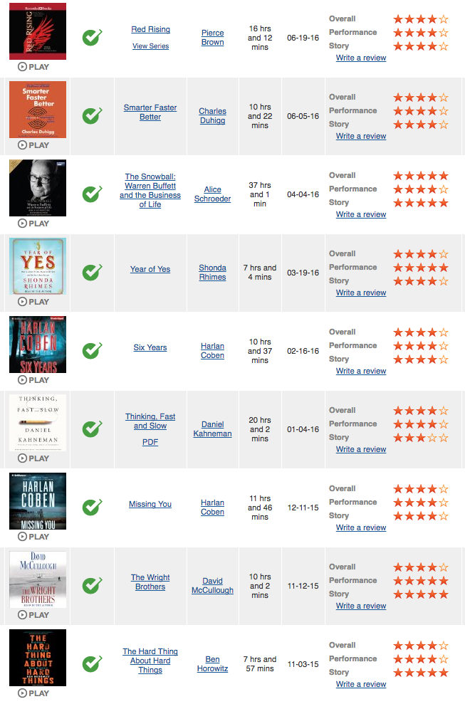 Here are some of the books I’ve enjoyed in the past 6 months. I am trying to alternate between fiction and non-fiction on a weekly bases. I did two official marathons (Teveria and California international marathon) and another 2 that weren’t part of an organized race, so in the training for these events, I had a lot of time to listen to audio books.